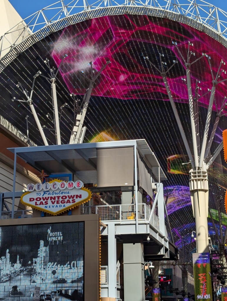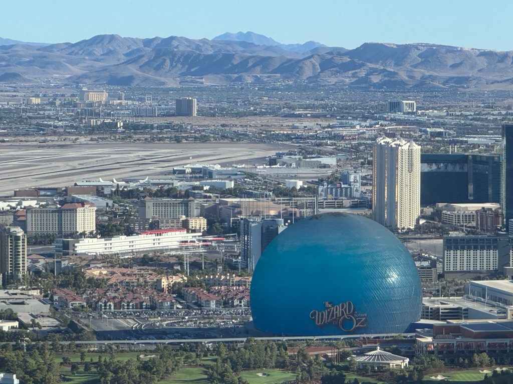 Zum Beispiel „The Sphere“ – eine riesige, kugelförmige Veranstaltungsarena, außen komplett mit LED-Panels bedeckt. Bei Dunkelheit natürlich besonders schön…