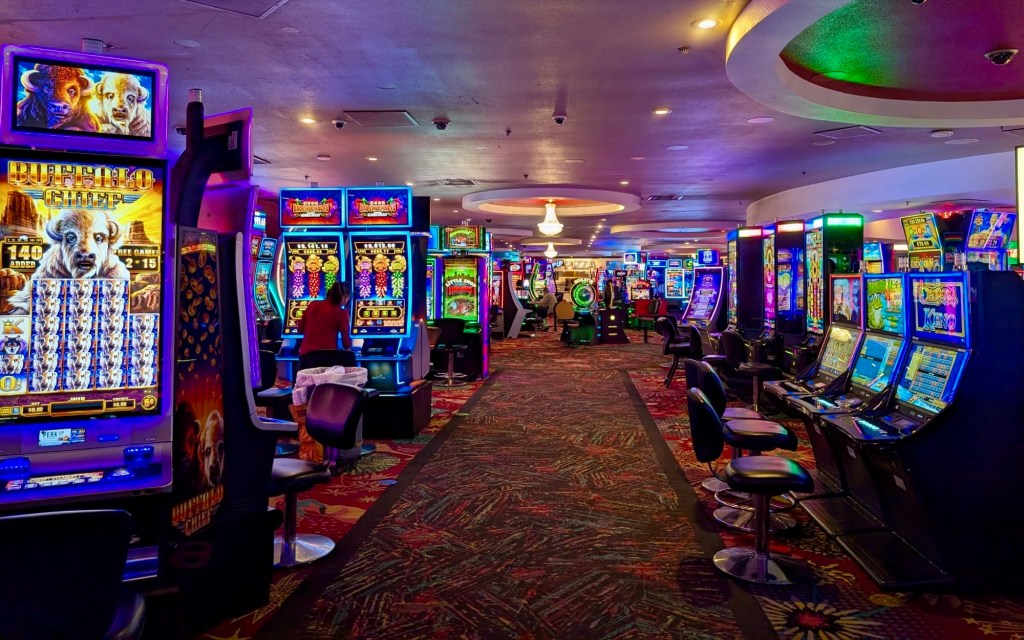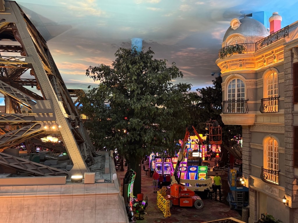 Vom Fahrstuhl des Parkplatzes landen wir zunächst im unüberschaubaren Casinobereich des Hotels. Es blinkt, dudelt, klimpert. Überall Spielautomaten und Spieltische, und wir marschieren mit unseren Koffern und Tüten mitten hindurch.