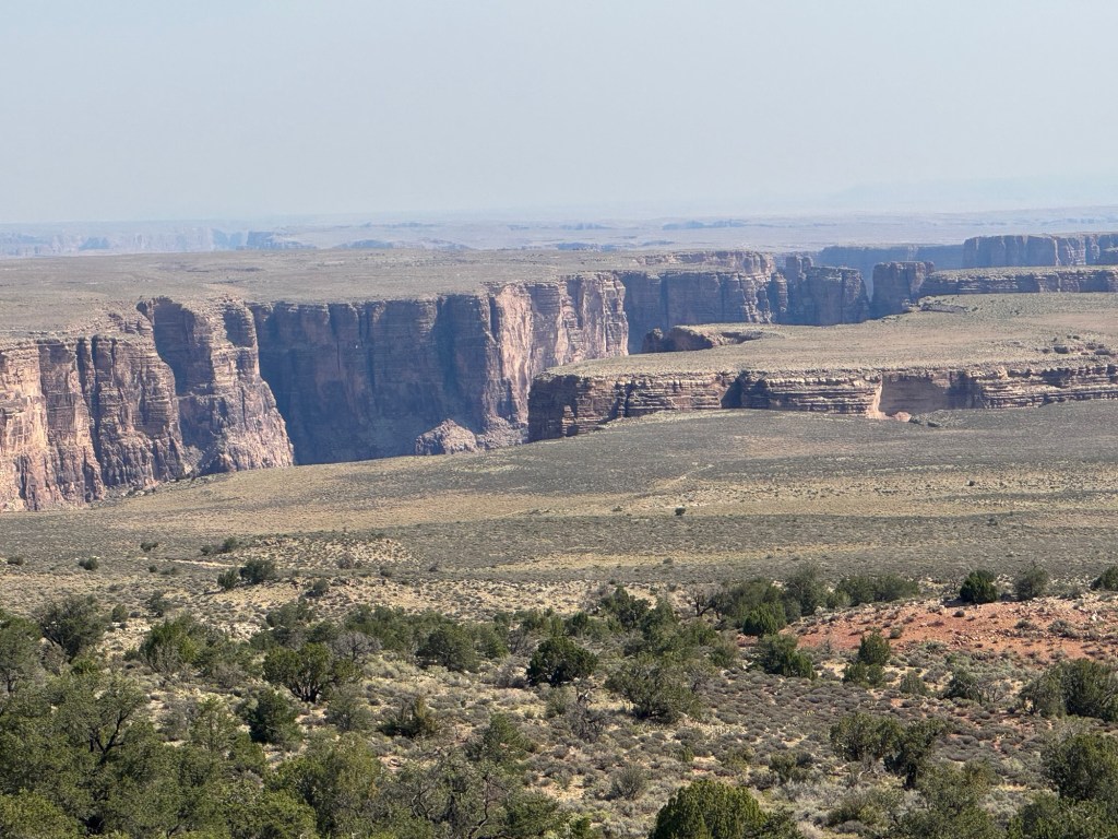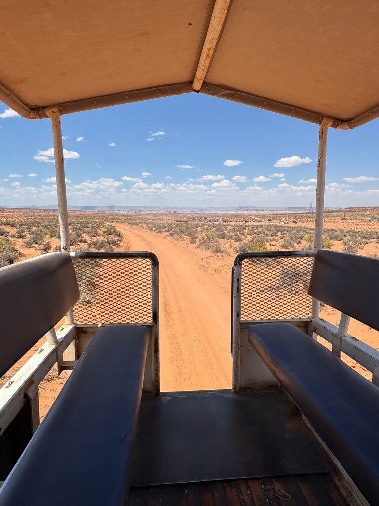 Etwas komplizierter wird es mit der Zeitverschiebung: Arizona stellt die Uhr nicht auf Sommerzeit um, Utah schon – und Page (da möchten wir hin) liegt irgendwo dazwischen. Da wir um 13:00 Uhr zur Antelope-Canyon-Tour angemeldet sind, hoffen wir, dass wir richtig denken und unser Navi die korrekte Zeit anzeigt. 🙏🏼