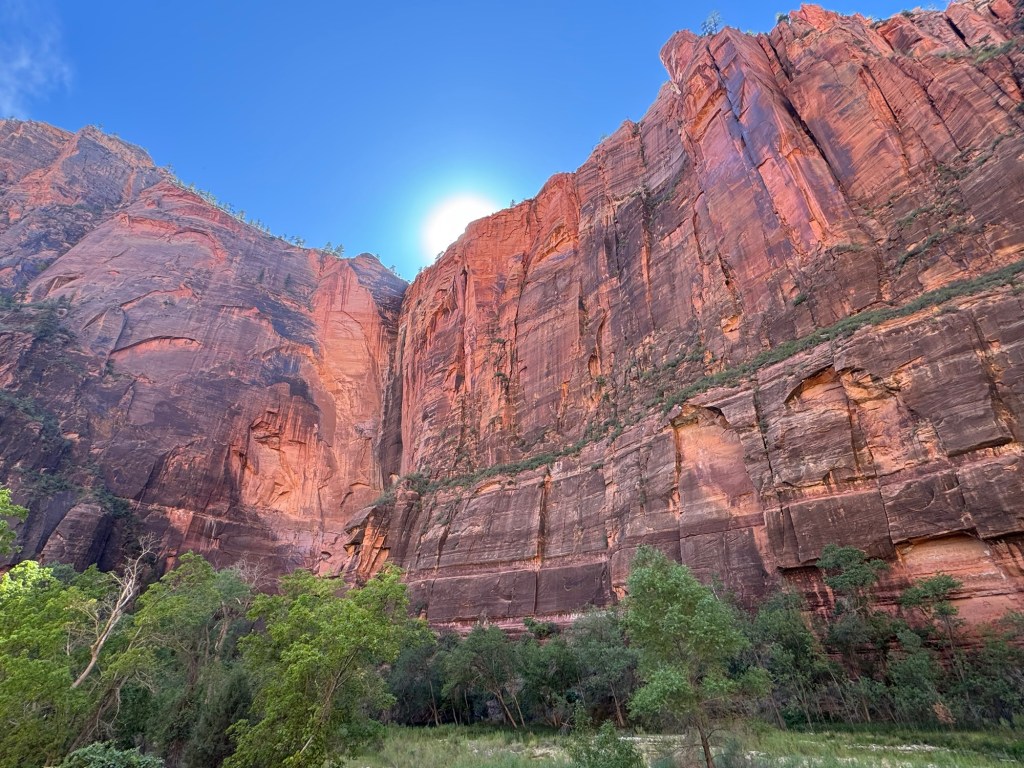 Wir machen schließlich zwei kurze Wanderungen, genießen zwischendurch den Blick auf die beeindruckenden Felswände – und beschließen dann, dass das für heute reicht. Zion ist landschaftlich beeindruckend, keine Frage, aber die Menschenmengen machen es uns heute nicht so leicht. Im Ranking unserer bisherigen Nationalparks landet er heute auf dem letzten Platz – auch wenn es hier eigentlich total schön ist.