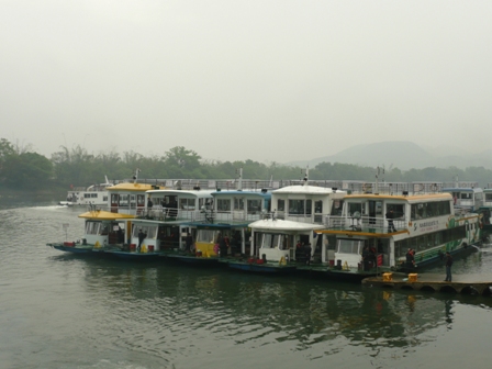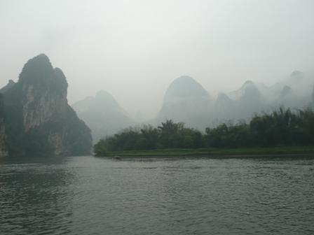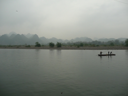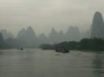 Zum Glueck legte unser Boot als erstes ab und die Boote verteilten sich recht gut auf dem Fluss, so dass ich die geniale Landschaft durchaus voll und ganz geniessen konnte! Es war einfach super, auf dem Li-Fluss durch die Berglandschaft zu schippern. Dank des Regens kamen die Berge farblich auch erst richtig zur Geltung… 😉