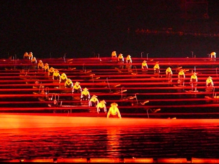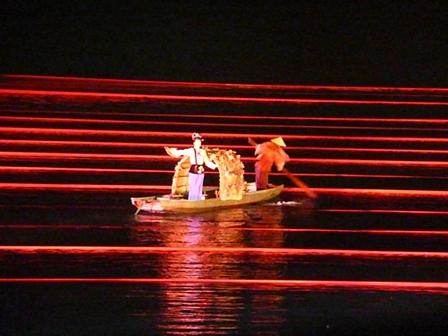 Fuer den Abend gab mir mein neuer Guide den Tipp, mir eine tolle Show auf dem Wasser anzusehen. Ich willigte ein und schon bemuehte er sich um eine Karte 🙂