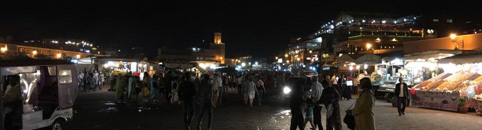 Bis zum Platz „Djemaa el Fna“ gingen wir nun also zusammen, dann trennten sich unsere Wege und wir „durften“ alleine weiter…  Welch vertraut buntes und verrücktes Treiben auf dem Platz… Dazu die vielen Saftstände, getrocknete Früchte und die zahlreichen dampfenden Garküchen… Immer wieder ein schönes Schauspiel.