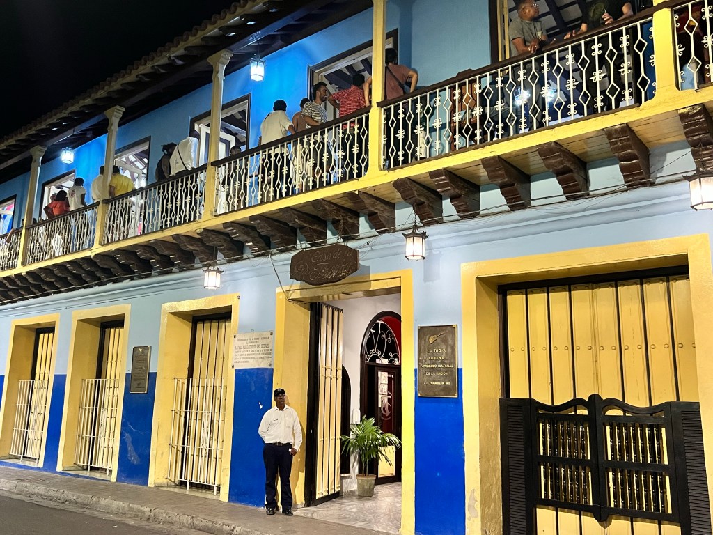„Natürliche Gastlichkeit strahlt die rund 500 Jahre alte, museal anmutende Kolonialstadt mit ihren gepflasterten Sträßchen aus“, so sagt es der Kuba-Reiseführer aus dem Nelles Verlag – und so kann es wohl kaum passender sein, dass wir nun zwei Nächte in den sogenannten Casas Particulares, in Privatunterkünften, schlafen und frühstücken. Vor der Reise habe ich mich schon das eine oder andere Mal gefragt, was und wie das wohl werden wird – und bin überrascht… Unsere gesamte Reisegruppe wird auf drei Casas aufgeteilt und ich bin überrascht, dass wir zu viert im gleichen Casa wohnen und tatsächlich jede Reisende ein Einzelzimmer mit eigenem Bad bekommt. Damit habe ich wahrlich nicht gerechnet. Mein Zimmer ist geräumig, alles sauber und bestens – und von meinem Zimmer in der oberen Etage mit Blick in die Nachbarschaft. Wir wohnen in dem grünen Haus, die obere Etage sieht man nur am Rande, in orange…Es gibt sogar WLAN – nachdem der Vermieter seine Rechnung bezahlt und sein Datenvolumen noch mal aufgeladen hat… 😉 Schön ist es hier!