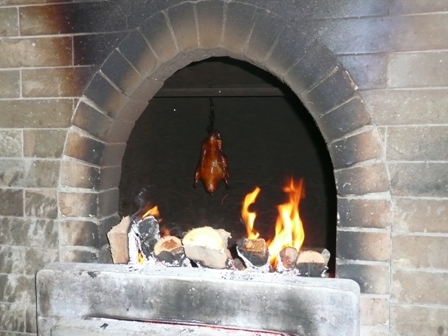 Ach ja – Peking-Ente gab es heute auch zum ersten Mal – voellig anders als bei uns, aber sehr lecker! Ich durfte sogar in die Kueche, um die arme Ente im Ofen haengend zu fotografieren 🙂