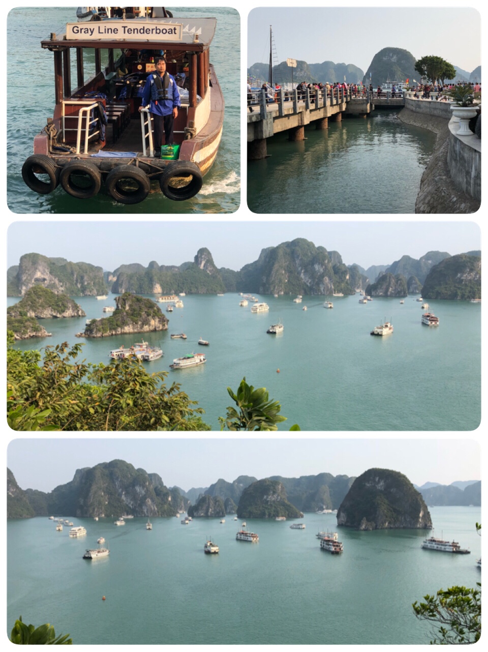 Wunderschön ist sie – die Bucht vor Ha Long mit ihren knapp 2000 Inseln und Inselchen. Wir machen hier nun eine dreitägige Bootstour und schippern auf den unterschiedlichsten Booten hin und her.