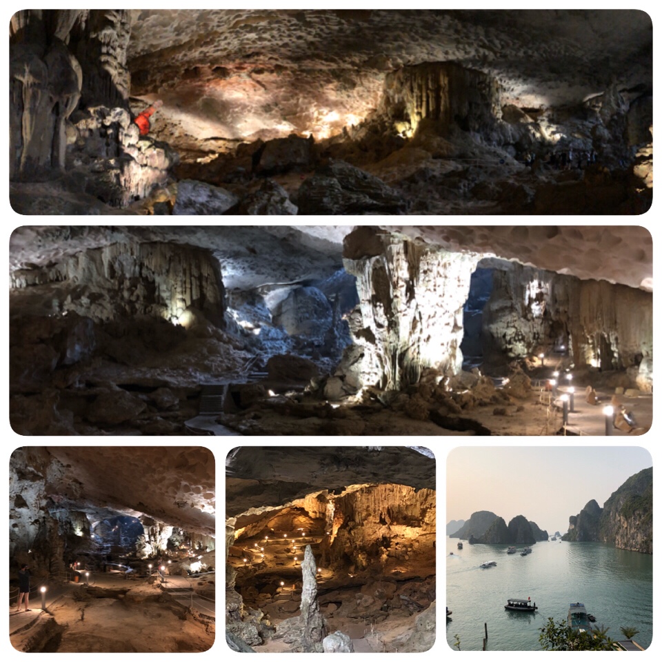 Zunächst steuern wir wieder einmal eine Höhle an. Und wieder sind wir allein in der Höhle – wie schön. Unser „Guide“ vom Boot begleitet uns – ein lustiger Typ, der gerne seine Witze macht. So habe ich ihm zunächst auch nicht geglaubt, als er uns mitteilte, dass wir bei der Besichtigung der Höhle mehrfach krabbeln müssen, um von „Raum“ zu „Raum“ zu kommen – aber so war es… Und in jedem „Raum“ gab es Neues zu entdecken: diverse Steintiere, dazu riesige Stalaktiten und Stalagmiten… Und der Klang der Stalaktiten… In einem absolut dunklem Höhlenbereich schlug der Guide verschiedene Stalaktiten an und es ertönten schöne Klänge – wie bei der Gamelan-Musik 😊